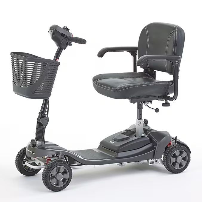 The Alumina Pro Boot Mobility Scooter by Motion Healthcare combines ultra-lightweight portability, long-range performance, and everyday comfort in a compact, travel-ready design. Built from aircraft-grade aluminium, this scooter is easy to disassemble, store, and lift into car boots—perfect for travel, shopping, or compact living spaces.