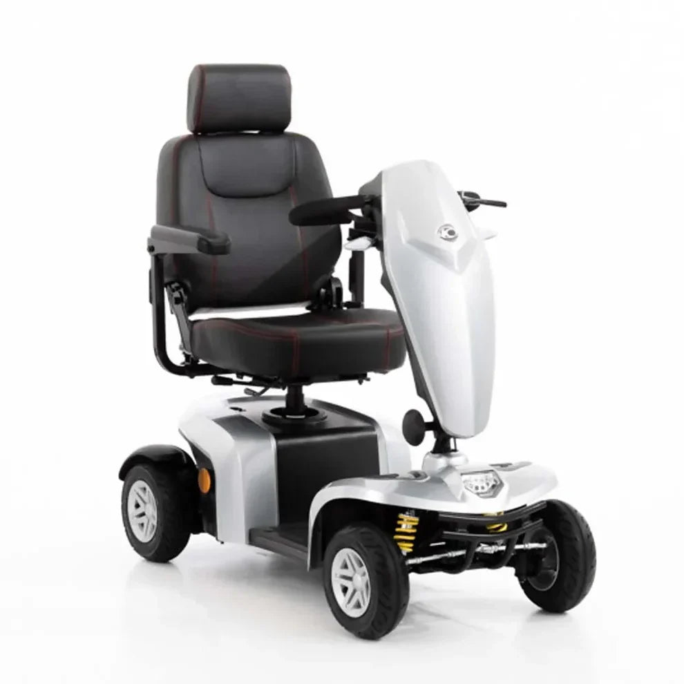 Equipped with a luxury captain’s seat featuring full reclining and 360° swivel, the Komfy 4 makes mounting, dismounting, and long journeys effortless. Breathable upholstery keeps you comfortable, while powerful suspension and solid tyres provide a smooth, stable ride across pavements and uneven surfaces.