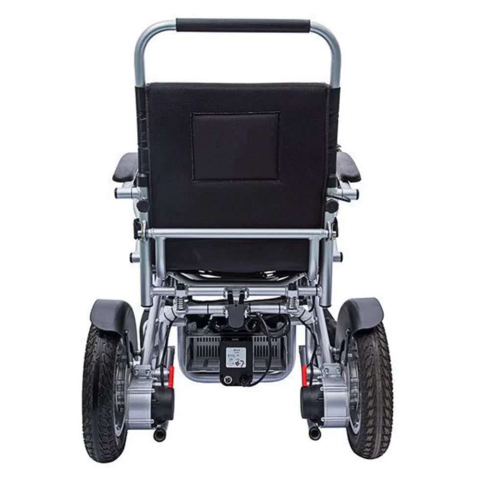 Product Specifications Maximum Speed Up to 4 miles per hour (6.4 km/h) Travel Range 9 miles per battery; extendable up to 27 miles with three batteries Maximum User Weight Up to 25 stone (approximately 158 kg) Total Weight (Including Batteries) 28.5 kilograms Heaviest Component 27.9 kilograms (wheelchair without batteries) Overall Width 24.4 inches (62 cm) Overall Length 40 inches (101.6 cm) Overall Height 35.4 inches (90 cm) Seat Width 19 inches (48.3 cm) Seat Depth 17.5 inches (44.5 cm) Battery Type Lithium Ion Battery Capacity 10 Ampere-hours (Ah) Off-Board Charging Supported for convenient battery removal and charging Tyres Front: Solid tyres | Rear: Pneumatic tyres Wheel Size Front wheels: 8 inches | Rear wheels: 12.5 inches Suspension Equipped with front shock absorbers for enhanced ride comfort Swivel Seat No swivel functionality Turning Radius 29.9 inches (76 cm) Headlight Includes integrated LED headlight for improved visibility Maximum Climbing Capability Up to 14° incline