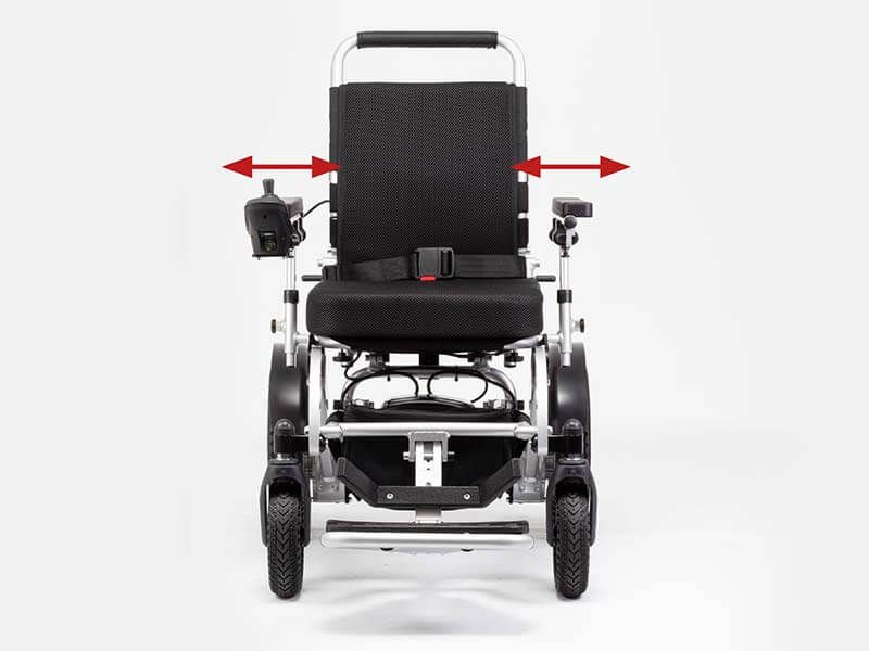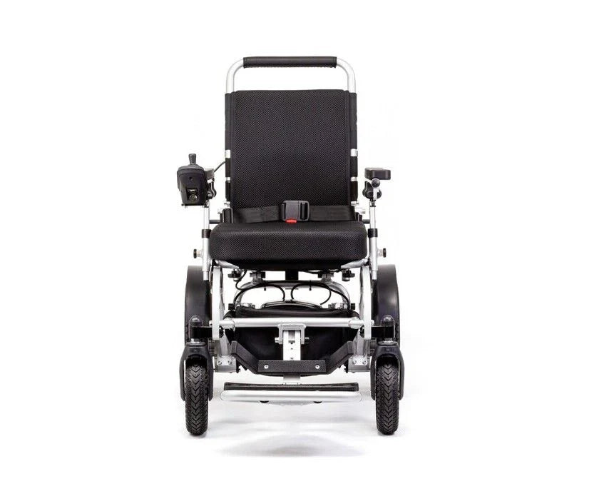 Specifications Top Speed Up to 4 mph Range 9 miles per battery, extendable with additional batteries Maximum User Weight Up to 14 stone (approx. 89 kg) Total Product Weight 24.5 kg Maximum Climbing Gradient Up to 14° Seat Width 14" Seat Depth 14" Overall Length 38.1" open | 29.3" folded Overall Width 22" (open and folded) Overall Height 35.2" open | 14.9" folded Ground Clearance 2" Drive Wheels 12.5" polyurethane (PU) tyres Front Wheels 8" shock-absorber PU tyres Motors Two 250W brushless motors with electromagnetic brakes Suspension Dual spring absorbers for enhanced comfort Battery Type Lithium (airline-approved) Battery Size 24V 10Ah per battery Off-Board Charging Yes Swivel Seat No Headlight LED headlight included for low-light safety