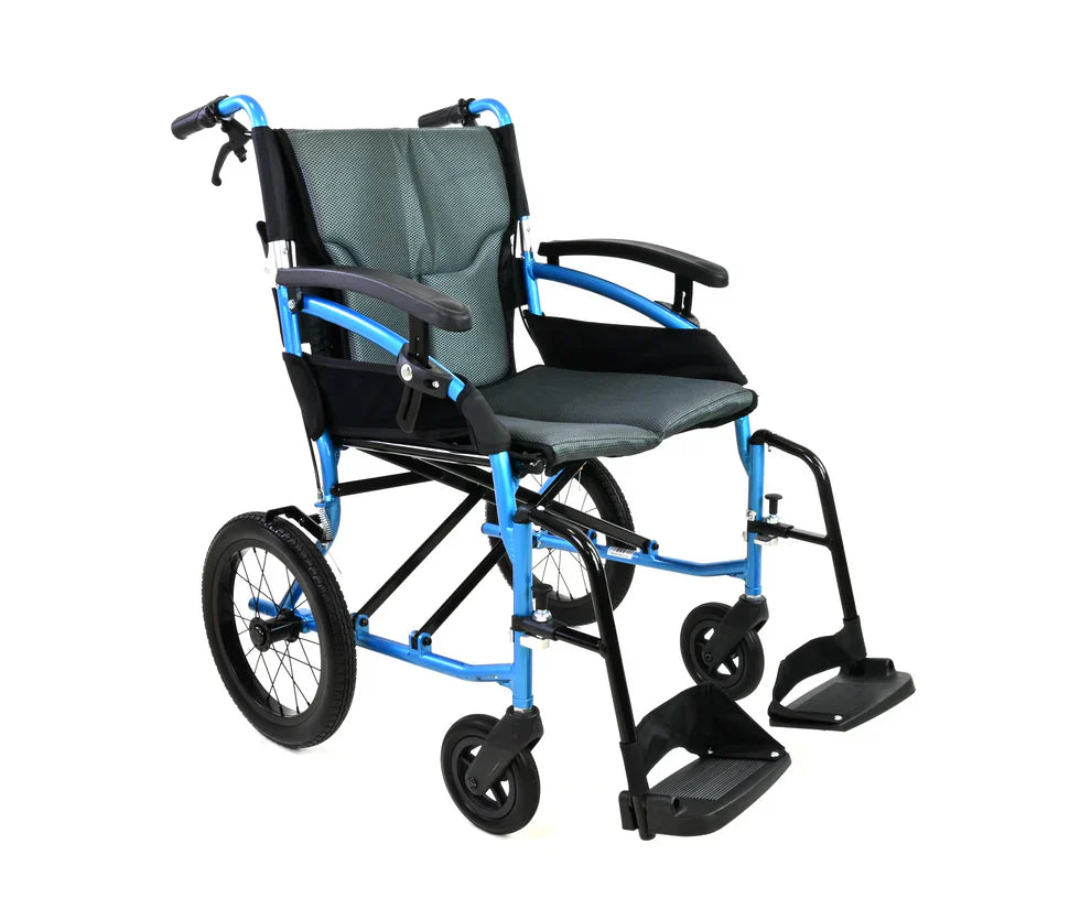 The Gravity Lite Transit Wheelchair combines lightweight design with robust construction, offering users effortless mobility and daily comfort. Crafted from aircraft-grade aluminium, this ultra-light wheelchair is ideal for both travel and everyday use, providing superior manoeuvrability, ergonomic seating, and practical features such as adjustable armrests and swing-away footrests. With quick-release wheels and secure attendant brakes, the Gravity Lite ensures safety, convenience, and independence, making it perfect for users on the move.