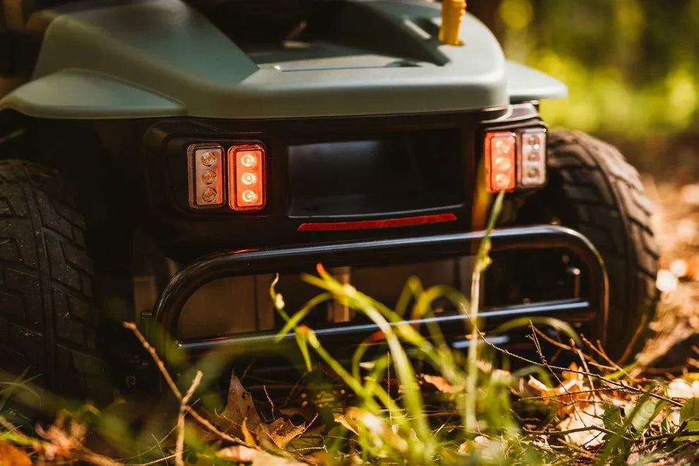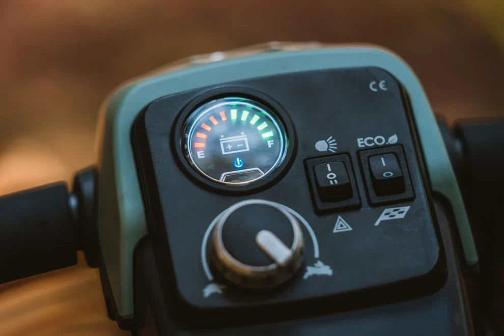 Conquer any terrain with the Baja Bandit Off-Road Mobility Scooter, designed for UK users who demand power, comfort, and versatility. Perfect for both rugged trails and everyday urban paths, this compact 8 mph scooter features advanced front, rear, and seat post suspension to smooth out even the roughest rides. With 4.5" ground clearance and durable solid tyres, it easily handles uneven surfaces, kerbs, and grassy trails. Powered by lightweight lithium-ion batteries, choose between 14.5 miles (20 Ah) or an extended 29-mile range (40 Ah) on a single charge, giving you the confidence to explore further. Designed to carry users up to 28 stone 8 lbs (181.5 kg), the Baja Bandit offers reliable performance, responsive delta tiller control, and a tight 53” turning radius for ultimate manoeuvrability. Stylish, robust, and adventure-ready, it’s the perfect mobility companion for off-road exploration or everyday journeys.