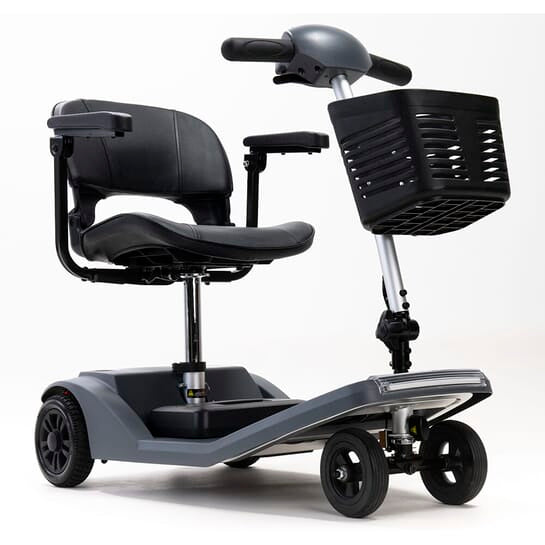 Weighing just 40 kg including the battery and reaching a top speed of 4 mph, the Air Active provides safe, smooth travel for everyday errands. Its adjustable tiller and seat allow a customised driving position, while puncture-proof tyres ensure a reliable ride across various surfaces.