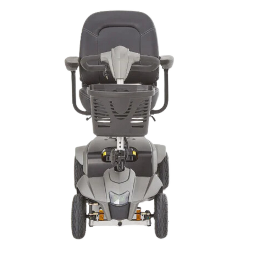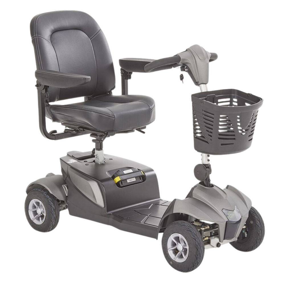 Powered by a 25.2V 27Ah lithium battery with off-board charging, the Aura offers up to 21 miles of range, while its pneumatic 9” tyres and all-round suspension ensure comfort on uneven surfaces. With an adjustable padded seat, ergonomic tiller, and intuitive controls, this scooter is simple and safe to operate for all ability levels.