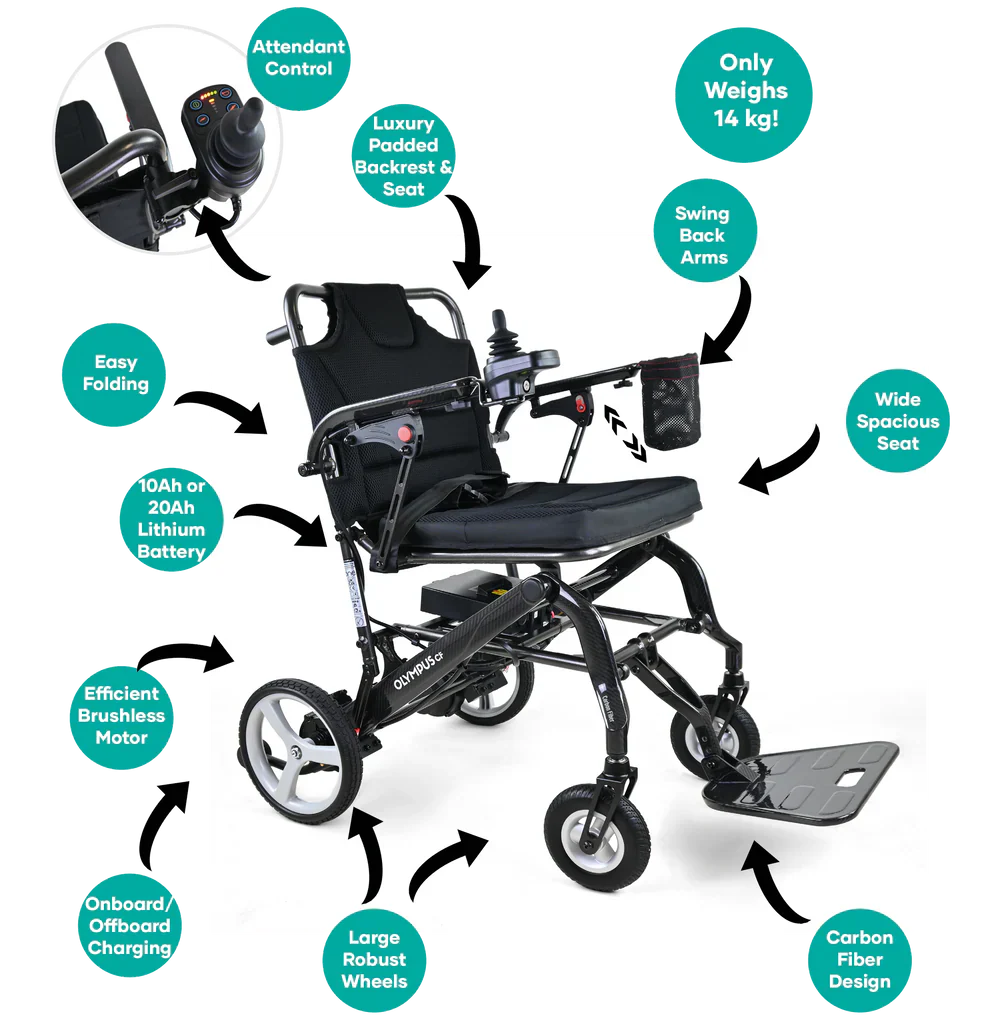 Olympus CF Folding Electric Wheelchair – Ultra-Lightweight Carbon Fibre Powerchair for Travel