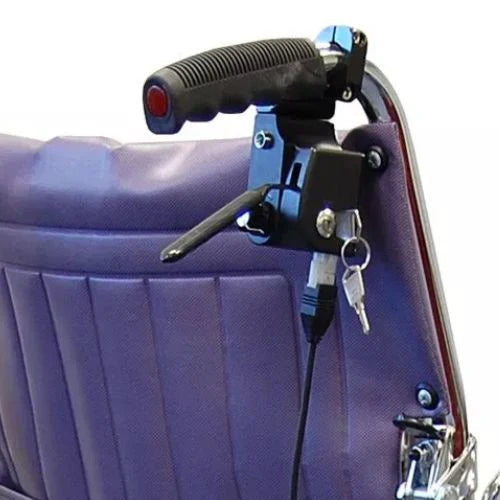 | Removable Battery with Security Key | Battery pack can be charged on or off the wheelchair; includes key lock for safety |