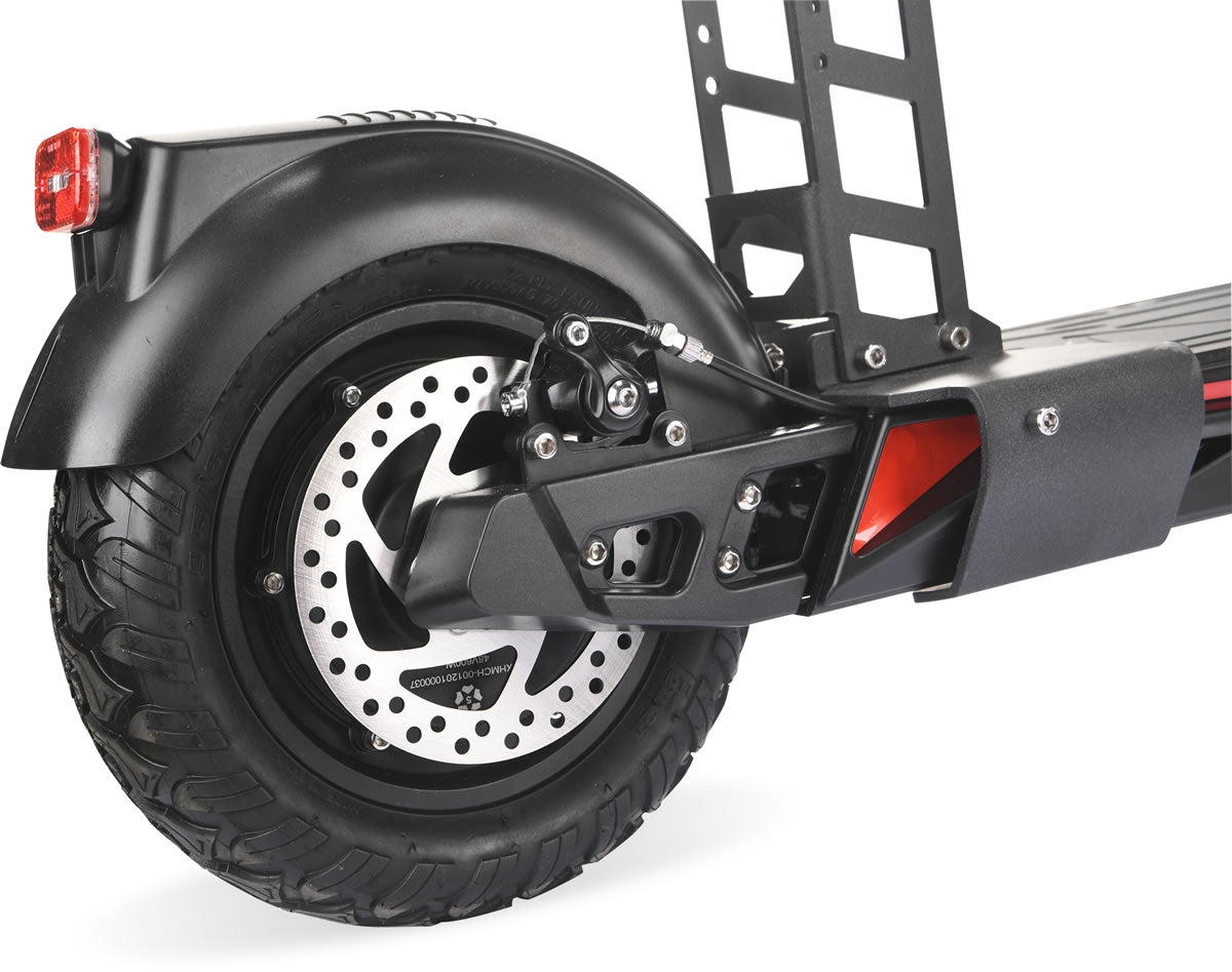 Built on a lightweight yet robust aluminium frame, the X1 combines strength with agility. Twin front coil shocks, rear suspension, and 10-inch heavy-duty all-terrain tyres ensure a smooth, stable ride across varied surfaces.