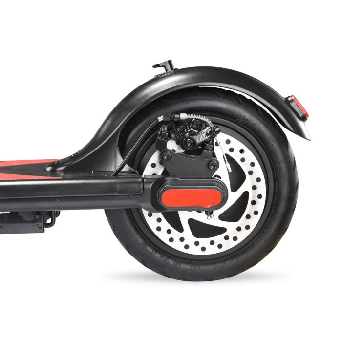 Powered by a 250W brushless rear-wheel motor and a 36V 6Ah lithium battery, the A1 reaches speeds of up to 25 km/h with a range of up to 20 km per charge, depending on rider weight and terrain. Safety is prioritised with a proper rear disc brake, anti-skid 8.5” tyres, and a push-to-start throttle system.